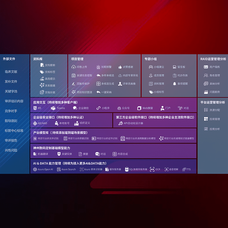 医疗器械产品上市前,,,,要熟悉严格与繁复评审标准,,,整理分析监管机构指导文件中的海量信息。。。企业急需一个智能化解决方案,,,,提升知识管理效率,,,,提高评审通过率,,,以提升其市场竞争力。。。